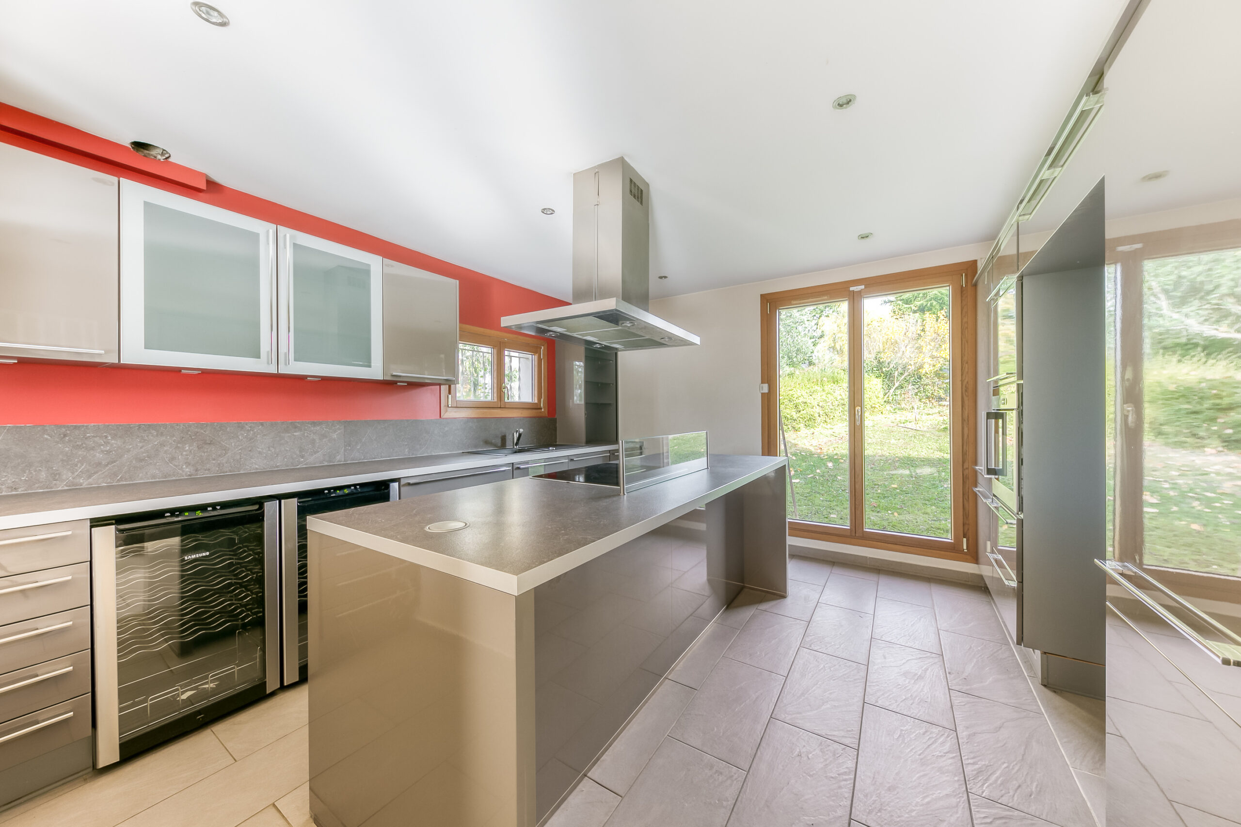 Belles prestations pour cette maison: MAgnifique Cuisine sur mesure entièrement équipée et aménagée, double vitrage, volets roulants électriques, porte de garage motorisée